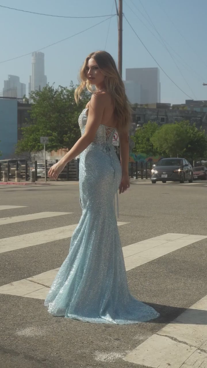 Ladivine J4055 Strapless Sequin Fitted Glittering Corset Dress