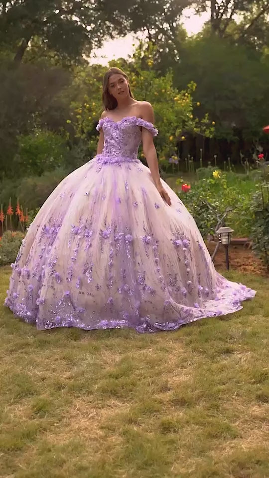 Cinderella Divine 15709 Ladivine Lavender Floral Quince Ball Gown