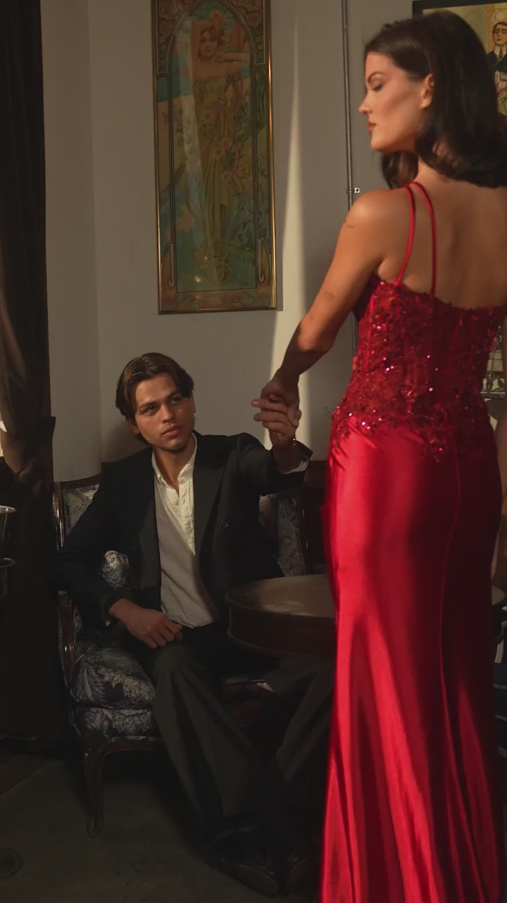 Ladivine 7481 Slit Leg Satin Corset Dress